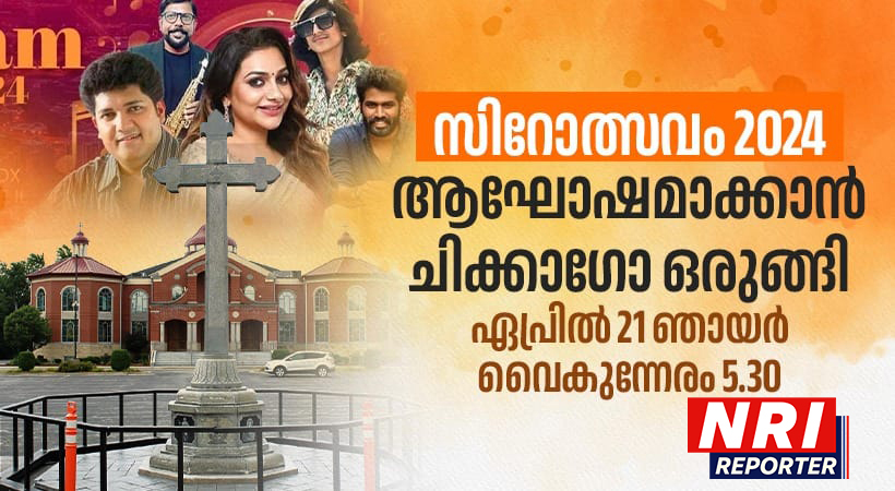 ചിക്കാഗോ: മാർ തോമ ശ്ലീഹ സിറോ മലബാര് കത്തീഡ്രലിന്റെ ആഭിമുഖ്യത്തില് സി.സി.ഡി സ്കൂൾ നവീകരണത്തിനായുള്ള ധനശേഖരണാർത്ഥം യെല്ലോ ബോക്സ് നേപ്പര്വില്ലയിൽ സിറോത്സവം 2024 സംഘടിപ്പിക്കുന്നു . നാളെ വൈകിട്ട് 5.30ന് (ഏപ്രില് 21ന്) തുടങ്ങുന്ന സിറോത്സവം പരിപാടിയെ ആവേശമാക്കുന്നതാകും റിമി ടോമി-ബിജുനാരായണന് കൂട്ടുകെട്ടിന്റെ തകര്പ്പന് ഗാനമേള. സിറോത്സവം ഷോയുടെ മുഴുവന് ടിക്കറ്റുകളും വിറ്റുകഴിഞ്ഞതായും ഷോ ഹൗസ് ഫുള്ളാണെന്നും സംഘാടക സമിതി അറിയിച്ചു. പരിപാടിക്കുള്ള ഒരുക്കങ്ങളും പൂർത്തിയായി.