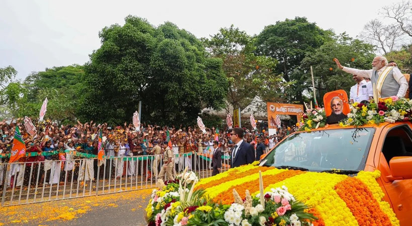 കേരളത്തിൽ ഏറെക്കാലമായി ഇടത് -വലത് മുന്നണികൾ വഞ്ചനയുടെ നാടകം കളിക്കുകയാണ്. രണ്ടു പേരും അഴിമതിയും കുടുംബവാഴ്ചയും ഒരുമിച്ച് നടപ്പാക്കുന്നു. ഇന്ത്യ മുന്നണിയുണ്ടാക്കി അവരൊന്ന് എന്ന് തെളിയിച്ചിരിക്കുകയാണ്. കേരള വികസനത്തിന് ബിജെപി അധികാരത്തില് വരണം. ഏത് ഓഫീസ് കേന്ദ്രീകരിച്ചാണ് സ്വർണ്ണം കടത്തിയതെന്ന് അറിയം. കണക്ക് ചോദിക്കാൻ പാടില്ലെന്ന് പറയുന്നു. കണക്ക് ചോദിച്ചാൽ പദ്ധതികൾക്ക് തടസ്സം നിൽക്കുകയാണ്. കേരളത്തിലെ സര്ക്കാര് അഴിമതിയും സ്വജനപക്ഷപാതവും നടത്തുകയാണെന്നും മോദി ആരോപിച്ചു. ബിജെപി സര്ക്കാര് സംസ്ഥാന വികസനത്തിലൂടെയാണ് രാജ്യവികസനം എന്നാണ് വിശ്വസിക്കുന്നത്.