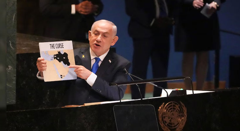 ‘ടെഹ്റാനിലെ സ്വേച്ഛാധിപതികള്ക്ക് എനിക്ക് ഒരു സന്ദേശമുണ്ട്. നിങ്ങള് ഞങ്ങളെ ആക്രമിച്ചാല് ഞങ്ങള് നിങ്ങളെ ആക്രമിക്കും, ഇസ്രായേലിന്റെ നീണ്ട കൈക്ക് എത്താന് കഴിയാത്ത ഒരു സ്ഥലവും ഇറാനിലില്ല, അത് മുഴുവന് മിഡില് ഈസ്റ്റിന്റെ കാര്യത്തിലും സത്യമാണ്’ നെതന്യാഹു യുഎന് ജനറല് അസംബ്ലിയില് വ്യക്തമാക്കിയതിങ്ങനെ. ഈ വേദിയിലെ പ്രസംഗിച്ച പലരും എന്റെ രാജ്യത്തിനെതിരെ ഉന്നയിച്ച നുണകളും അപവാദങ്ങളും കേട്ടതിന് ശേഷം, ഇവിടെ വന്ന് ഇവിടെ വന്ന് യാഥാര്ഥ്യം എന്തെന്ന് പറയാന് ഞാന് തീരുമാനിച്ചു, എന്നാണ് യുഎന്നിലെ പ്രസംഗത്തിന്റെ തുടക്കത്തില് നെതന്യാഹു പറഞ്ഞത്.