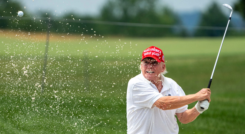 ലോകത്തിലെ ഏറ്റവും മികച്ച ടൂർണമെൻ്റ് ഗോൾഫ് കോഴ്സുകളിലൊന്നായി കണക്കാക്കപ്പെടുന്ന ഡൊറലിലെ ബ്ലൂ മോൺസ്റ്റർ കോഴ്സിൽ നടന്ന റാലിയിലാണ് ട്രംപിന്റെ വെല്ലുവിളി. “ഡോറലിൻ്റെ ബ്ലൂ മോൺസ്റ്ററിലെ 18-ഹോൾ ഗോൾഫ് മത്സരത്തിന് ജോയെ ഞാൻ ഔദ്യോഗികമായി വെല്ലുവിളിക്കുന്നു.”