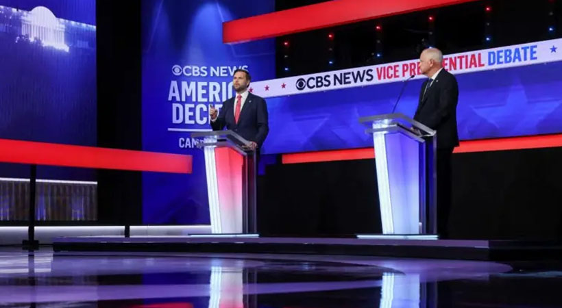 അമേരിക്കൻ ദേശീയ രാഷ്ട്രീയത്തിലെ താരതമ്യേന പുതുമുഖങ്ങളായ റിപ്പബ്ളിക്കൻ വൈസ് പ്രസിഡൻ്റ് സ്ഥാനാർഥിയും ഒഹായോ സെനറ്ററമായ ജെ.ഡി വാൻസും ഡെമോക്രാറ്റ് വൈസ് പ്രസിഡൻ്റ് സ്ഥാനാർഥിയും മിനസോട്ട ഗവർണറുമായ ടിം വാൾസും തമ്മിലുള്ള സംവാദം പുരോഗമിക്കുകയാണ്. വളരെ മാന്യവും വ്യക്തവുമായ സംവാദത്തിൽ അതതു പാർട്ടികളുടെ നയപരിപാടികളും നിലപാടുകളുമാണ് ഇരുവരും വിശദീകരിക്കുന്നത്. ഇതുവരെ എന്തെങ്കിലും തരത്തിലുള്ള വ്യക്തി അധിക്ഷേപങ്ങളോ വിവാദ പരാമർശങ്ങളോ ഇരുവരും നടത്തിയിട്ടില്ല.