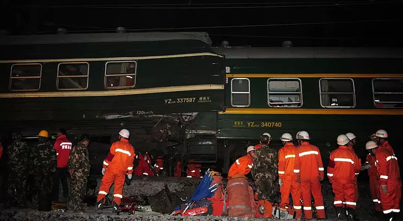 ഈ ട്രെയിന് കുന്മിങ് പട്ടണത്തിനരികിലെ ട്രാക്കില് വച്ച് നിര്മാണത്തൊഴിലാളികളെ ഇടിക്കുകയായിരുന്നു. വളഞ്ഞ ട്രാക്ക് ആയതിനാല് അപ്രതീക്ഷിതമായി ട്രെയിന് എത്തിയത് തൊഴിലാളികളുടെ ശ്രദ്ധയില് പെട്ടില്ല. സംഭവത്തില് അധികൃതര് അന്വേഷണം പ്രഖ്യാപിച്ചിട്ടുണ്ട്. ഒരു ദശാബ്ദത്തിനിടെ ചൈനയിലുണ്ടായ ഏറ്റവും വലിയ ട്രെയിന് അപകടമാണിത്.