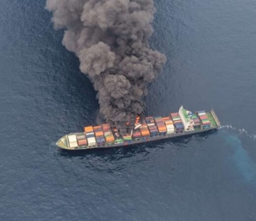 കപ്പലിൽ 650 കണ്ടെയ്നറുകള് ഉണ്ടായിരുന്നുവെന്നും 50 കണ്ടെയ്നറുകൾ കത്തിനശിച്ചതായുമാണ് വിവരം. ഫീഡർ കപ്പലാണെന്ന് സൂചന. കോഴിക്കോട് തീരത്ത് നിന്നും 144 കിലോമീറ്റർ വടക്ക് പടിഞ്ഞാറ് ഉൾക്കടലിലാണ് അപകടം.