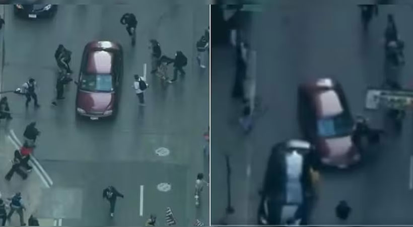 ഒരു ചുവന്ന കാര് അതിവേഗം പാഞ്ഞുവന്ന് ആളുകള്ക്കിടയിലേക്ക് കയറുന്നതും ഒരു സ്ത്രീ നിലത്ത് വീഴുന്നതും ദൃശ്യങ്ങളില് കാണാം. പ്രാദേശിക സമയം
