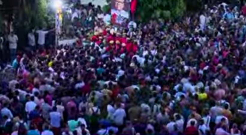 മുതിർന്ന കമ്മ്യൂണിസ്റ്റ് നേതാവും മുൻ മുഖ്യമന്ത്രിയുമായ വി എസ് അച്യുതാനന്ദൻ്റെ മൃതദേഹം എകെജി സെൻ്ററിലേക്ക് എത്തും മുമ്പ് തന്നെ ജനസാഗരമായി എകെജി സെൻ്റർ. വി എസിനെ അവസാന നോക്ക് കാണാനായി നിരവധി പേരാണ് എകെജി സെൻ്ററിൽ എത്തിക്കൊണ്ടിരിക്കുന്നത്. ദൂരെയിടങ്ങളിൽ നിന്ന് പോലും നിരവധി ആളുകൾ എത്തിക്കൊണ്ടേയിരിക്കുകയാണ്. ഒഴുകിയെത്തുന്ന ജനസാഗരത്തെ ഉൾക്കൊള്ളാനാവാതെ എകെജി സെൻ്ററും പരിസര പ്രദേശങ്ങളും നിറഞ്ഞു.