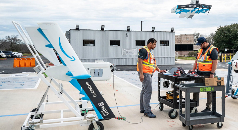 നോർത്ത് ടെക്സാസിലെ റിച്ചാർഡ്സണിലാണ് ആദ്യമായി ഈ സേവനം ലഭ്യമാകുക. വാക്കോ, സാൻ അന്റോണിയോ (ടെക്സാസ്), ടോളെസൺ (അരിസോണ), പോണ്ടിയാക് (മിഷീഗൺ), റസ്കിൻ (ഫ്ലോറിഡ) എന്നിവിടങ്ങളിലും ആമസോൺ ഡ്രോൺ ഡെലിവറി സേവനം അവതരിപ്പിച്ചിട്ടുണ്ട്.പ്രദേശത്തെ ഉപഭോക്താക്കൾക്ക് പതിനായിരക്കണക്കിന് സാധനങ്ങൾ ഒരു മണിക്കൂറിനുള്ളിൽ ഡ്രോൺ വഴി ലഭിക്കും. വാൾമാർട്ടും ഈ രംഗത്ത് സജീവമാണ്.