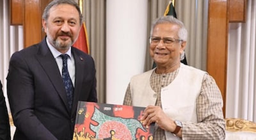 ധാക്ക: ബംഗ്ലാദേശ് ഇടക്കാല സർക്കാരിന്റെ തലവൻ മുഹമ്മദ് യൂനുസ് തുർക്കി പാർലമെന്ററി പ്രതിനിധി സംഘത്തിന് ‘ആർട്ട് ഓഫ് ട്രയംഫ്’ എന്ന കലാസൃഷ്ടി സമ്മാനിച്ചു. ഇന്ത്യയുടെ വടക്കുകിഴക്കൻ പ്രദേശങ്ങൾ ബംഗ്ലാദേശിന്റെ അതിർത്തിക്കുള്ളിൽ ചിത്രീകരിച്ച ഭൂപടമടങ്ങുന്നതാണ് ഈ സൃഷ്ടി. പാകിസ്താൻ ജോയിന്റ് ചീഫ്സ് ഓഫ് സ്റ്റാഫ് ചെയർമാൻ ജനറൽ സാഹിർ ഷംഷാദ് മിർസയ്ക്ക് സമാനമായ സമ്മാനം നൽകിയതിന് പിന്നാലെയാണ് ബംഗ്ലാദേശിന്റെ പുതിയ പ്രകോപനം.