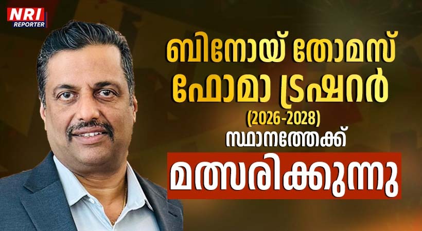 ന്യു യോർക്ക്: പ്രമുഖ മലയാളി സംഘടന കേരള സമാജം ഓഫ് സ്റ്റാറ്റൻ ഐലൻഡ് മുൻ പ്രസിഡണ്ടും ഫോമാ ന്യൂ യോർക്ക് മെട്രോ റീജിയൻ ആർ.വി.പിയും ആയിരുന്ന ബിനോയ് തോമസ് ഫോമാ ട്രഷറർ (2026-2028) ആയി മത്സരിക്കുന്നു
