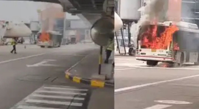 Bus catches fire at Delhi’s Indira Gandhi Airport.