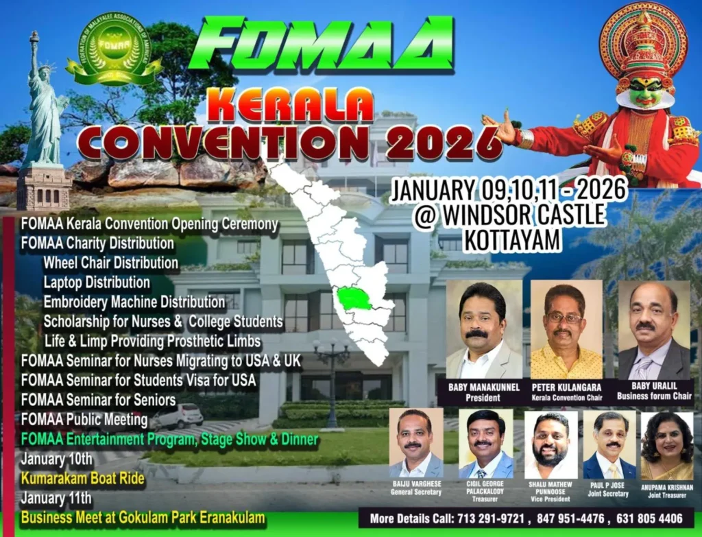 Charity’s Greatness Reflected at Fomaa Kerala Convention 2026 – Peter Kulangara