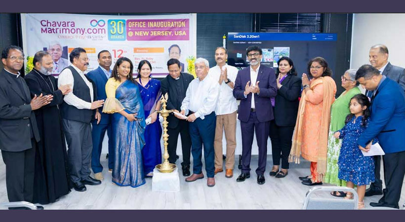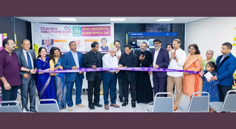 ന്യൂ യോർക്ക്: വി. ചാവറ പിതാവിൻ്റെ കുടുംബ ദർശനങ്ങൾ ഉൾക്കൊണ്ട് 1996 ൽ കൊച്ചി ചാവറ കൾച്ചറൽ സെൻ്ററിൽ സ്ഥാപിതമായ സിഎംഐ വൈദീകരുടെ നേതൃത്വത്തിലുള്ള ചാവറ മാട്രിമണി മുപ്പതാം വർഷത്തിലേക്ക് കടക്കുന്ന വേളയിൽ അതിൻ്റെ 30 -) മത് ബ്രാഞ്ച് അമേരിക്കയിലെ ന്യൂജേഴ്സിയിൽ വൂഡ്ബ്രിഡ്ജ് സിറ്റിയിലെ ടോമാർ കെട്ടിട സമുച്ചയത്തിൽ ജൂലൈ 12 ന് ഉത്ഘാടനം ചെയ്തു.