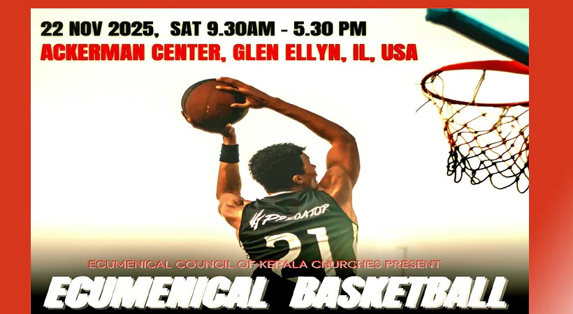 ഷിക്കാഗോ : എക്കുമെനിക്കല് കൗണ്സിലിന്റെ ആഭിമുഖ്യത്തില് നടത്തപ്പെടുന്ന ബാസ്കറ്റ് ബോള് ടൂര്ണമെന്റിന്റെ ഒരുക്കങ്ങള് പൂര്ത്തിയായതായി ഭാരവാഹികള് അറിയിച്ചു. ഗ്ലന് എലന് അകെര്മാന് സ്പോര്ട്സ് കോംപ്ലക്സില് നവംബര് 22 ശനിയാഴ്ച രാവിലെ 9.30 മുതല് 5 30 pm വരെ നടത്തപ്പെടുന്ന ഈ ടൂര്ണമെനിന്റെ നേതൃത്വം നല്കുന്നത് റവ. ബിജു യോഹന്നാനും കണ്വീനറായി റോഡ്നി സൈമണ് എന്നിവരടങ്ങുന്ന ഒരു കമ്മിറ്റിയാണ്.