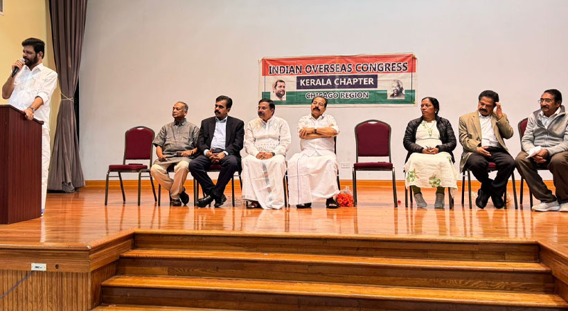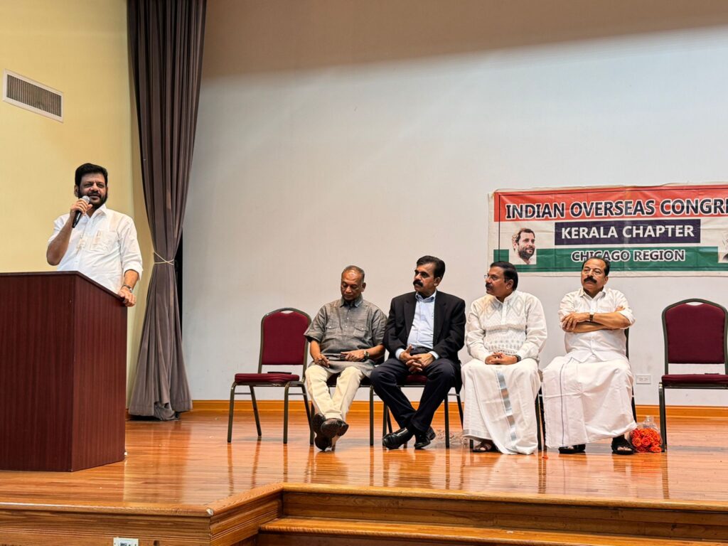 ഇന്ത്യന് ഓവര്സീസ് കോണ്ഗ്രസ് (ഐഒസി) കേരള ചാപ്റ്റർ ഷിക്കാഗോ റീജൻ നൽകിയ സ്വീകരണ സമ്മേളനത്തിൽ സംസാരിക്കുകയായിരുന്നു അദ്ദേഹം. ഇല്ലിനോയ് മോര്ട്ടണ് ഗ്രോവിലുള്ള സെന്റ് മേരീസ് ക്നാനായ പള്ളിയില്(7800 Lyons St.) ഒക്ടോബര് 17 വെള്ളിയാഴ്ച രാത്രിയാണ് സ്വീകരണ പരിപാടി നടന്നത്