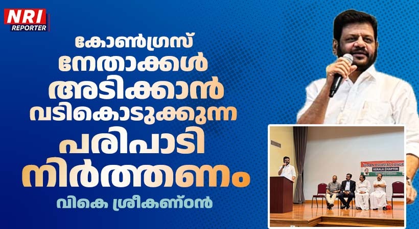 ഇന്ത്യൻ ഓവർസീസ് കോൺഗ്രസ് കേരള ഘടകം പ്രസിഡൻ്റ് ജോർജ് പണിക്കർ ചടങ്ങിൽ അധ്യക്ഷനായിരുന്നു. കേരള രാഷ്ട്രീയത്തിലെ പ്രതിഭയാണ് വികെ ശ്രീകണ്ഠനെന്നും സാമൂഹിക നീതി, വിദ്യാഭ്യാസം, യുവജനക്ഷേമം തുടങ്ങിയ വിഷയങ്ങളിൽ സാമൂഹിക പ്രതിബദ്ധതയോടെ മുന്നിൽ നിന്നു അർപ്പണമനോഭാവത്തോടെ ആത്മാർഥമായി പ്രവർത്തിക്കുന്ന നേതാവാണ് അദ്ദേഹമെന്നും ജോർജ് പണിക്കർ പറഞ്ഞു.