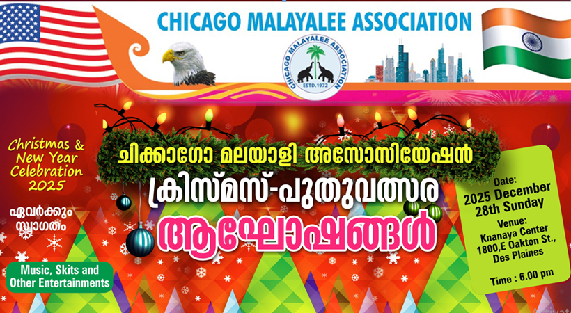 Chicago Malayali Association Christmas – New Year celebrations on December 28th