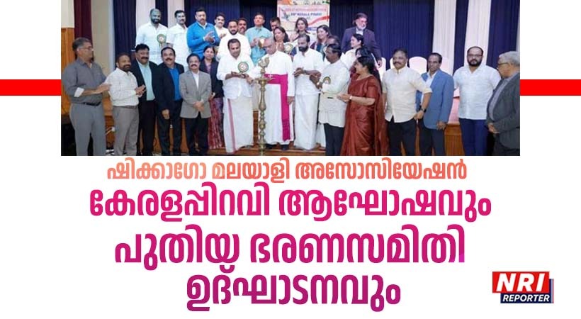 ഷിക്കാഗോ : ഷിക്കാഗോ മലയാളി അസോസിയേഷന്റെ 2025-27 കാലത്തേക്കുള്ള പുതിയ ഭരണസമിതിയുടെ പ്രവർത്തനോദ്ഘാടനവും 69-മത് കേരളപ്പിറവി ദിനാഘോഷവും മോർട്ടൻ ഗ്രോവിലുള്ള സെന്റ് മേരീസ് ക്നാനായ കാത്തലിക് ചർച്ച് ഓഡിറ്റോറിയത്തിൽ നടന്നു . ഷിക്കാഗോ മലയാളി അസോസിയേഷന്റെ മുൻ പ്രസിഡന്റ്മാരായി വിവിധ കാലയളവുകളിൽ പ്രവർത്തിച്ച പതിനൊന്നു പേരുടെ സാന്നിധ്യത്തിൽ ഈയിടെ സ്ഥാനമൊഴിഞ്ഞ പ്രസിഡന്റ് ജെസ്സി റിൻസി ,പുതിയ പ്രസിഡന്റ് ജോസ് മണക്കാട്ടിന് ദീപം പകർന്നു നൽകിക്കൊണ്ട് ചുമതലകൾ കൈമാറി. സിറോ മലബാർ സഭ ഷിക്കാഗോ രൂപതാധ്യക്ഷൻ മാർ ജോയ് ആലപ്പാട്ട് പുതിയ ഭരണസമിതിയുടെ പ്രവർത്തനോദ്ഘാടനം നിർവ്വഹിച്ചു . പുതിയ നേതൃത്വത്തിന്റെ കീഴിൽ അസോസിയേഷൻ ശക്തി പ്രാപിക്കട്ടെ എന്ന് അദ്ദേഹം ആശംസിച്ചു.