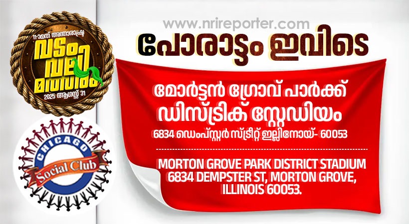 മത്സര വീര്യം പകരാന് കാണികളുടെ കയ്യടികളും ആര്പ്പുവിളികളും ഒത്തുചേര്ന്നപ്പോള് മോര്ട്ടന് ഗ്രോവ് പാര്ക് സ്റ്റേഡിയം ഒരു കൊച്ചുകേരളമായി മാറുന്നു. സംഘാടക മികവുകൊണ്ട് ശ്രദ്ധ പിടിച്ചുപറ്റിയ ഷിക്കാഗോ സോഷ്യല് ക്ലബിന്റെ വടംവലിയുടെ പൂള് മത്സരങ്ങള് രണ്ടുമണിക്കൂര് പിന്നിട്ടിരിക്കുന്നു. തെളിഞ്ഞ അന്തരീക്ഷവും കാലാവസ്ഥയും നല്കി പ്രകൃതിപോലും മത്സരത്തിന് പിന്തുണയേകുന്ന കാഴ്ചയാണ് ഷിക്കാഗോയിലുള്ളത്.