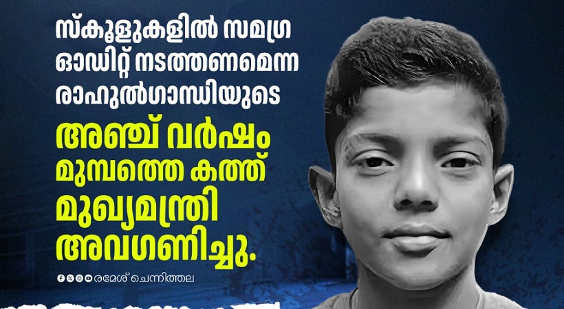അഞ്ചു വര്ഷം മുമ്പ് സുല്ത്താന് ബത്തേരിയില് വിദ്യാര്ഥിനി ക്ളാസ് മുറിയില് പാമ്പുകടിയേറ്റു മരിച്ച സംഭവം നടന്നപ്പോള് അന്ന് വയനാട് എംപിയായിരുന്ന രാഹുല് ഗാന്ധി സ്കൂളുകളില് സമഗ്രമായ അടിസ്ഥാന സൗകര്യ ഓഡിറ്റ് നടത്തണമെന്നാവശ്യപ്പെട്ട് മുഖ്യമന്ത്രി പിണറായി വിജയന് കത്തയച്ചിരുന്നു. അന്ന് അതിലെ നിര്ദേശമനുസരിച്ച് സമഗ്ര ഓഡിറ്റ് നടത്തിയിരുന്നെങ്കില് മിഥുന്റെ ജീവന് നഷ്ടപ്പെടുമായിരുന്നില്ല – ചെന്നിത്തല ഫേസ് ബുക്കിൽ പറഞ്ഞു.