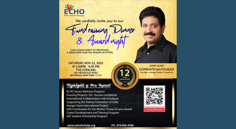 ധാരാളം മലയാളികൾ വസിക്കുന്ന പ്രദേശമാണ് ലോങ്ങ് ഐലൻഡ്. അവരിൽ ഭൂരിഭാഗവും ക്വീൻസ്, ഫ്ലോറൽ പാർക്ക്, ന്യൂഹൈഡ് പാർക്ക്, എൽമോണ്ട്, ഈസ്റ്റ് മെഡോ, ഹിക്സ്വിൽ തുടങ്ങിയ പ്രദേശങ്ങൾ കേന്ദ്രീകരിച്ചാണ് താമസം. അതിൽ നല്ലൊരു പങ്കു മലയാളികളും ഇരുപതോ മുപ്പതോ വർഷങ്ങൾക്ക് മുമ്പ് അമേരിക്കയിലേക്ക് കുടിയേറിയവരാണ്. ആ കൂട്ടരിൽ അധികം പേരും ഇപ്പോൾ അറുപതോ എഴുപതോ വയസ്സിന് മുകളിൽ പ്രായമുള്ളവരും. സമൂഹത്തിൽ ഒറ്റപ്പെടുന്ന സീനിയേഴ്സിന് താങ്ങും തണലുമായി അവരുടെ ശാരീരിക-മാനസിക ആരോഗ്യ പരിപാലനത്തിനും ഉന്നമനത്തിനുമായി ബ്രഹത്തായ പദ്ധതിയായ “സീനിയർ വെൽനെസ്സ് പ്രോഗ്രാം” (Senior Wellness Program) ന്യൂഹൈഡ് പാർക്ക് കേന്ദ്രീകരിച്ച് 2021 മാർച്ചിൽ ആരംഭം കുറിച്ചതാണ് ECHO എന്ന സംഘടന. എല്ലാ വെള്ളിയാഴ്ചയും (ആഴ്ചയിൽ ഒരു ദിവസം മാത്രം) വൈകിട്ട് 3 മുതൽ 7 മണി വരെ മുതിർന്ന പൗരന്മാർക്കായി ന്യൂഹൈഡ് പാർക്കിലെ ക്ലിന്റൺ ജി. മാർട്ടിൻ കമ്മ്യൂണിറ്റി ഹാളിൽ സീനിയേഴ്സിൻറെ ഒരു സൗഹൃദ കൂട്ടായ്മക്ക് ECHO വേദിയൊരുക്കി. തുടക്കത്തിൽ മുപ്പതിനടുത്തു മാത്രം മുതിർന്നവർ ഒത്തുകൂടിയ സ്ഥലത്ത് ഇപ്പോൾ നാലു വർഷം പിന്നിടുമ്പോൾ നാനൂറോളം പേർ ഒത്തുകൂടുന്ന അവസ്ഥയിലേക്ക് വളർന്നു. മൂന്നു വർഷം പിന്നിട്ടപ്പോൾ 2024 രണ്ടാം പാതിയിൽ ലെവിടൗണിലുള്ള സെൻറ് തോമസ് മലങ്കര ഓർത്തഡോക്സ് പള്ളിയുടെ ഓഡിറ്റോറിയത്തിൽ (110 School House Road, Levittown, NY 11756) എല്ലാ ചൊവ്വാഴ്ചകളിലും വൈകിട്ട് 4 മുതൽ 7 മണി വരെ ഒത്തുകൂടുന്ന രീതിയിലുള്ള രണ്ടാമത്തെ കേന്ദ്രം ആരംഭിച്ച് ECHOയുടെ പ്രവർത്തന പന്ഥാവ് വികസിപ്പിക്കുന്നതിന് സാധിച്ചു എന്നത് പ്രശംസനീയമാണ്.