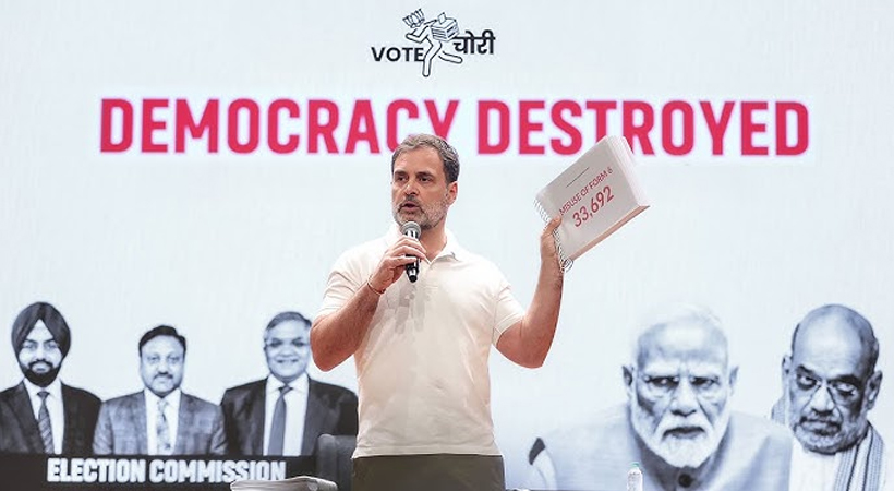 മഹാരാഷ്ട്രയിലെ രജൂര മണ്ഡലത്തിൽ 6850 വ്യാജ വോട്ടുകളാണ് ചേർത്തത്. വ്യാജ ലോഗിനുകള് ഉപയോഗിച്ച് ആറായിരത്തോളം വോട്ടുകള് നീക്കി. സോഫ്റ്റ് വെയര് ഉപയോഗിച്ച് വോട്ടര്മാരുടെ പേരുകള് നീക്കം ചെയ്യുന്നു. സ്വതന്ത്രവും സുതാര്യവുമായ തിരഞ്ഞെടുപ്പ് ഉറപ്പാക്കേണ്ട കമ്മിഷന് പക്ഷപാതപരമായാണ് ഇടപെടുന്നതെന്നും കോൺഗ്രസിന് വോട്ടുചെയ്യുന്നവരെയാണ് ഇത്തരത്തരത്തിൽ നീക്കിയതെന്നും രാഹുൽ പറയുന്നു. ഓട്ടോമാറ്റിക് സോഫ്റ്റ്വെയർ വോട്ടു കൊള്ളയ്ക്കായി പ്രവർത്തിക്കുകയാണ്. പട്ടികയിൽ നിന്നു വോട്ട് നീക്കാനുള്ള അപേക്ഷകനായി കാണിക്കുന്നത് ഓരോ ബൂത്തിലെയും ആദ്യത്തെ വോട്ടറുടെ പേരാണ്. ഇത് കേന്ദ്രീകൃതമായി ചെയ്യുന്നതാണെന്നു വ്യക്തമാണ്.