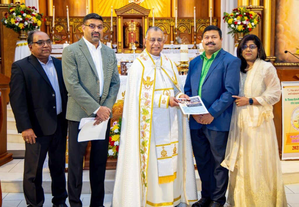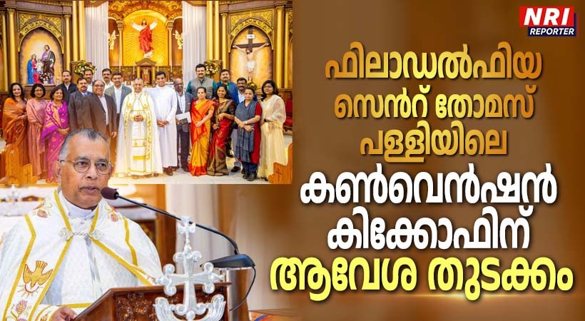 ഷിക്കാഗോ: രജതജൂബിലി ആഘോഷിക്കുന്ന മലബാർ രൂപതയുടെ ജൂബിലി ആഘോഷങ്ങളുടെ ഭാഗമായി നടത്തപ്പെടുന്ന കൺവെൻഷന്റെ കിക്കോഫ് ജൂബിലി കൺവീനർ ഫാദർ ജോൺ മേലേപ്പുറത്തിന്റെ നേതൃത്വത്തിൽ ഫിലാഡൽഫിയ സെൻറ് തോമസ് സീറോ മലബാർ ഫൊറോന പള്ളിയിൽ ഉത്സാഹപൂർവ്വം നവംബർ ഒൻപതാം തീയതി നടന്നു. കൺവെൻഷന്റെ ഭാഗമായി ഇടവകകൾ സന്ദർശിക്കുന്നതിനും വിവരങ്ങൾ പങ്കുവയ്ക്കുന്നതിനും ആയി എത്തിച്ചേർന്ന ഫാ: ജോൺ മേലേപുറത്തിനെയും കൺവെൻഷൻ ചെയർമാൻ ബിജി സി. മാണി, ഫിനാൻസ് ചെയർമാൻ ആൻഡ്രൂസ് തോമസ് എന്നിവരെയും ഇടവക വികാരി ഫാ: ജോർജ് ദാനവേലിൽ, കൺവെൻഷൻ പ്രതിനിധികളായ അലക്സ് പടയാറ്റിൽ, ജെയ്സി ജോസഫ്, ജോസ് കുന്നേൽ, ജോസ് തോമസ്, സിബിച്ചൻ ചേമ്പ്ളാണിയിൽ എന്നിവരും മറ്റു ഇടവകാംഗങ്ങളും സന്തോഷപൂർവ്വം സ്വീകരിച്ചു. ഫാ: ജോൺ മേലേപ്പുറം രൂപതയുടെ രജത ജൂബിലി ആഘോഷങ്ങളുടെ ഭാഗമായി നടത്തപ്പെടുന്ന പരിപാടികളുടെ വിവരങ്ങൾ നൽകി. നാലു ദിവസങ്ങളിലായി നടത്തപ്പെടുന്ന കൺവെൻഷൻ പരിപാടികളുടെ രൂപരേഖ ബിജി സി. മാണി അവതരിപ്പിച്ചു. രജിസ്ട്രേഷൻ, സ്പോൺസർഷിപ്പ് അവസരങ്ങളുടെ വിശദവിവരങ്ങൾ ആൻഡ്രൂസ് തോമസ് നൽകി. ഫാ: ജോർജ് ദാനവേലിൽ ഇടവകയുടെ പിന്തുണ പ്രഖ്യാപിച്ചതോടൊപ്പം ഏവരെയും ഇതിൽ പങ്കുചേരുവാൻ ക്ഷണിക്കുകയും ചെയ്തു.