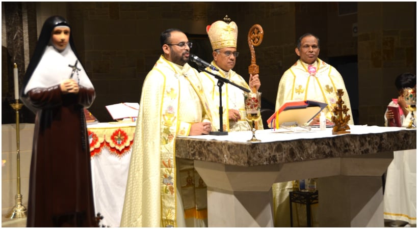 ഫ്രിസ്കോ: നോർത്ത് ഡാളസിൽ കഴിഞ്ഞവർഷം പുതുതായി സ്ഥാപിതമായ വിശുദ്ധ മറിയം ത്രേസ്യായുടെ മധ്യസ്ഥതയിലുള്ള അമേരിക്കയിലെ ആദ്യ ദേവാലയമായ സെന്റ് മറിയം ത്രേസ്യാ സീറോ മലബാർ മിഷനിൽ വിശുദ്ധ മറിയം ത്രേസ്യായുടെ പ്രഥമ തിരുനാളിന് കൊടിയേറി. ഒക്ടോബർ 4 ശനിയാഴ്ച വൈകുന്നേരം 6 ന് നടന്ന ഭക്തിനിർഭരമായ ചടങ്ങുകളിൽ ചിക്കാഗോ സീറോ മലബാർ രൂപതാ മെത്രാൻ മാർ ജോയ് ആലപ്പാട്ട് തിരുനാൾ കൊടിയേറ്റി. തുടർന്ന് മാർ. ആലപ്പാട്ട് മുഖ്യകാർമികനായി ആഘോഷമായ വിശുദ്ധ കുർബാന അർപ്പിച്ചു. മിഷൻ ഡയറക്ടർ ഫാ. ജിമ്മി എടക്കുളത്തൂർ കുര്യൻ, കൊപ്പേൽ സെന്റ്. അൽഫോൻസാ വികാരി ഫാ. മാത്യൂസ് കുര്യൻ മുഞ്ഞനാട്ട് എന്നിവർ തിരുകർമ്മങ്ങളിൽ സഹകാർമ്മികരായി.