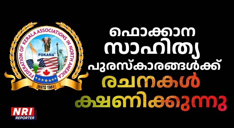2025 ലെ ഫൊക്കാന സാഹിത്യ പുരസ്കാരങ്ങൾക്ക് പരിഗണിക്കുന്നതിനായി 2023 ജൂലായ് ഒന്നിനും 2025 ജൂൺ 30 നുമിടയ്ക്ക് ആദ്യ പതിപ്പായി പ്രസിദ്ധീകരിച്ച മൗലിക കൃതികൾ ക്ഷണിക്കുന്നു.