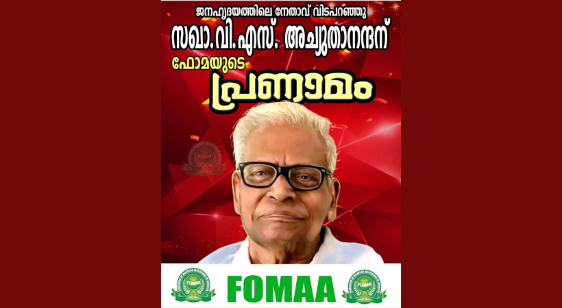 സിപിഎമ്മിന്റെ രൂപവത്കരണത്തില് പങ്കാളിയായവരില് ജീവനോടെ ഉണ്ടായിരുന്നവരില് അവസാനത്തെ കണ്ണിയായിരുന്ന വി.എസ്, നീതിക്കും ജനാധിപത്യത്തിനും വേണ്ടിയുള്ള തളരാത്ത ശബ്ദമായിരുന്നുവെന്നു ഫോമാ ട്രഷറര് സിജില് പാലക്കലോടി അനുസ്മരിച്ചു.