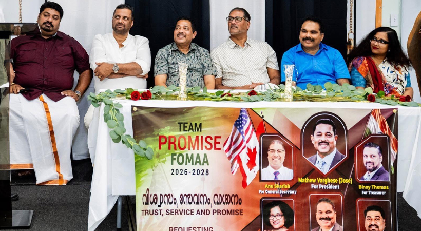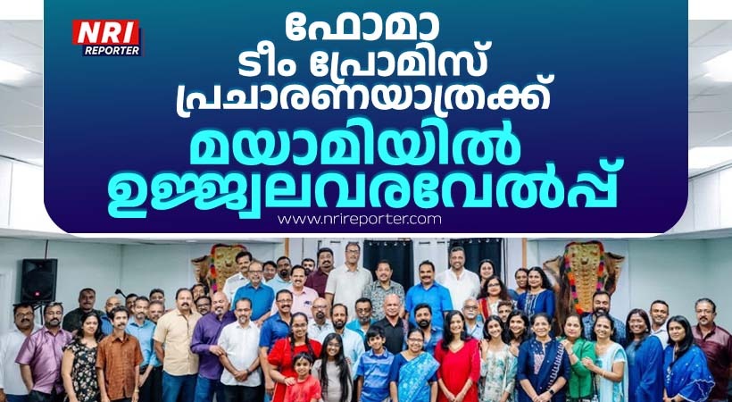 വിശ്വസ്തത-സത്യസന്ധത-പ്രതിബദ്ധത-സുതാര്യത മുഖമുദ്രയാക്കി പ്രവർത്തിക്കുമെന്ന ദൃഢനിശ്ചയവുമായി ഫോമാ 2026-2028 ഭരണസമിതിയിലേക്ക് മത്സരിക്കുന്ന മാത്യു വർഗീസ് നേതൃത്വം നൽകുന്ന ടീം പ്രോമിസ് സാരഥികൾക്ക് മയാമി മലയാളി സമൂഹം ഉജ്ജ്വലവരവേൽപ്പ് നൽകി. മാത്യു വർഗീസ് – പ്രസിഡന്റ് , അനു സ്കറിയ -സെക്രട്ടറി, ബിനോയ് തോമസ് – ട്രഷറർ , ജോൺസൺ ജോസഫ് – വൈസ് പ്രസിഡന്റ് , രേഷ്മ രഞ്ജൻ – ജോയിൻറ് സെക്രട്ടറി, ടിറ്റോ ജോൺ – ജോയിന്റ് ട്രഷറർ എന്നിവരാണ് ടീം പ്രോമിസ് സ്ഥാനാർത്ഥികൾ .
