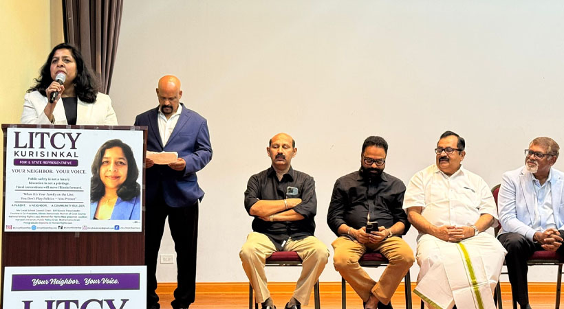 ഏത് ഓഫിസിലായാലും അവിടെ ഒരു മലയാളി ഉണ്ടെങ്കിൽ അവിടത്തെ നിലവാരം ഉയർന്നതായിരിക്കും എന്നതിൽ ഒരു സംശയവും വേണ്ട. മലയാളി കൈവെക്കുന്ന എല്ലാ മേഖലയും അത്തരത്തിലാണ്, ഒരു മികച്ച വ്യത്യാസം കൊണ്ടു വരാൻ മലയാളിക്ക് കഴിയും, അതിനായി പരിശ്രമിക്കും. ഒരു സ്റ്റേറ്റ് റെപ്രസൻ്റേറ്റിവ് ഏതെങ്കിലും ഒരു ഡിസ്ട്രിക്ടിനെയായിരിക്കും പ്രതിനിധീകരിക്കുക പക്ഷേ, ഒരു സംസ്ഥാനത്തെ സംബന്ധിക്കുന്ന എല്ലാ നിയമ നിർവഹണങ്ങളിലും വോട്ട് ചെയ്യാൻ അവകാശമുള്ളതിനാൽ എല്ലാ ജനപ്രതിനിധികളും വളരെ നിർണായകമാണ് – ലിറ്റ്സി പറഞ്ഞു. ഞാൻ എൻ്റെ ക്യാംപെയ്ൻ തുടങ്ങിയപ്പോൾ തന്നെ ഇല്ലിനോയ് നഴ്സസ് അസോസിയേഷൻ എന്നെ ബന്ധപ്പെട്ടിരുന്നു. ശരിക്കും നമ്മുടെ ഇന്ത്യൻ നഴ്സുമാർ സൂപ്പർ ഹീറോകളാണ്. ആശുപത്രിയിലും വീട്ടിലും ഒരേ പോലെ ദീർഘ നേരം ജോലിചെയ്യുന്നവരാണ്. പക്ഷേ ആശുപത്രികളിൽ അവരുടെ ജോലി സാഹചര്യം മെച്ചപ്പെടത്താൻ ആവശ്യമായ ചില നിയമനിർമാണങ്ങൾ ആവശ്യമാണ്. അതുപോലെ തന്നെ, ഗ്യാസ് സ്റ്റേഷൻ നടത്തുന്ന വ്യവസായികളെ സംബന്ധിച്ച് അവരുടെ നികുതി – ഇൻഷുറൻസ് സംബന്ധമായ നിയമനിർമാണം നടത്തേണ്ട സാഹചര്യം വരുമ്പോൾ അവർക്ക് ഒപ്പം നിൽക്കേണ്ടവരാണ് ഡിസ്ട്രിക്ട് റെപ്രസെൻ്റേറ്റീവ്സ്. എല്ലാവരുടേയും ജീവിതത്തെ ബാധിക്കുന്ന എന്തെങ്കിലുമൊക്കെ കാര്യങ്ങളിൽ നിയമനിർമാണം നടത്തുന്നവരാണ് ഈ പ്രതിനിധികൾ. തീർച്ചയായും മലയാളികൾ ഏറെ പേരുള്ള ഷിക്കാഗോയിൽ അവരെ പ്രതിനിധീകരിക്കുന്നവരുണ്ടെങ്കിൽ മാത്രമേ അവരുടെ ജീവിതത്തേയും വരും തലമുറകളുടെ ജീവിതത്തേയും ബാധിക്കുന്ന പ്രശ്നങ്ങളിൽ ഇടപെടാൻ സാധിക്കുകയുള്ളു. ഷിക്കാഗോ കുറ്റകൃത്യങ്ങൾക്ക് പേരുകേട്ട നഗരമാണ്. അതുകൊണ്ടു തന്നെ, എൻ്റെ മുൻഗണന പൊതു സുരക്ഷയ്ക്ക് ആയിരിക്കും. കുറ്റകൃത്യങ്ങളുടെ അടിസ്ഥാന കാരണങ്ങൾ മനസ്സിലാക്കി കൃത്യമായ ആസൂത്രണത്തോടെ പദ്ധതികൾ രൂപീകരിച്ച് നടപ്പിലാക്കും. അനധികൃത കുടിയേറ്റക്കാരെ നാടുകടത്തുന്നതിൻ്റെ ഭാഗമായി ഷിക്കാഗോയിലും മറ്റു പല സംസ്ഥാനങ്ങളിലും നടമാടുന്ന റെയ്ഡുകളും മറ്റും നിങ്ങൾ ശ്രദ്ധിക്കുന്നുണ്ടായിരിക്കും. അതിനെതിരെ നിരന്തരം പ്രതികരിക്കുന്ന വ്യക്തിയാണ്ഞാൻ. പ്രതികരിക്കേണ്ട സമയത്ത് പ്രതികരിച്ചില്ലെങ്കിൽ നമ്മൾ ഇരകളാക്കപ്പെടും എന്നതാണ് വസ്തുത. നമ്മുടെ ഭാവി നമ്മൾ തീരുമാനിച്ചില്ലെങ്കിൽ അത് മറ്റാരെങ്കിലും തീരുമാനിക്കും എന്ന കാര്യം മറന്നു പോകരുത്. നിങ്ങൾ നൽകുന്ന ഒരോ ഡോളറും നിങ്ങളുടെ അധ്വാനത്തിൻ്റെ വിലയാണ് എന്ന് എനിക്ക് അറിയാം, അതിന് ഞാൻ നിങ്ങളോട് കടപ്പെട്ടിരിക്കും. നിങ്ങളുടെ അവകാശങ്ങൾക്ക് വേണ്ടി എന്നും ഒപ്പം നിൽക്കും ലിറ്റ്സി പറഞ്ഞു.