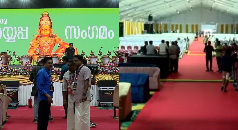 പത്തനംതിട്ട: തിരുവിതാംകൂര് ദേവസ്വം ബോര്ഡ് സംഘടിപ്പിക്കുന്ന ആഗോള അയ്യപ്പസംഗമം ഇന്ന് പമ്പാ മണപ്പുറത്ത് നടക്കും. ശബരിമലയുടെ സമഗ്രവികസനം ലക്ഷ്യമിട്ടാണ് പരിപാടി സംഘടിപ്പിക്കുന്നത്. പത്മശ്രീ കൈതപ്രം ദാമോദരന് നമ്പൂതിരിയുടെ പ്രാര്ത്ഥനയോടെ തുടക്കമാകുന്ന സംഗമം മുഖ്യമന്ത്രി പിണറായി വിജയന് ഉദ്ഘാടനം ചെയ്യും. ചടങ്ങിൽ ദേവസ്വം വകുപ്പ് മന്ത്രി വി എന് വാസവന് അധ്യക്ഷനാകും. തിരുവിതാംകൂര് ദേവസ്വം ബോര്ഡ് പ്രസിഡന്റ് പി എസ് പ്രശാന്ത് പരിപാടിയില് സ്വാഗതം പറയും.