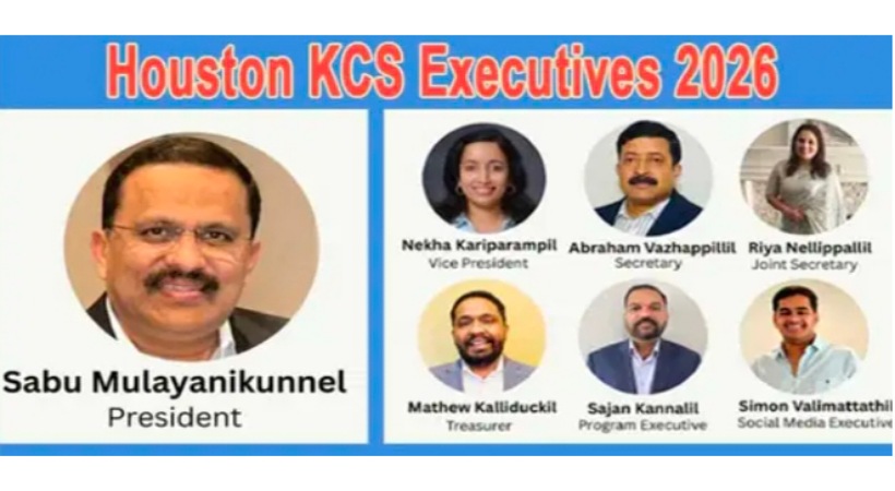 ഹൂസ്റ്റൺ: ഹൂസ്റ്റണിലെ ക്നാനായ സമുദായത്തെ അർപ്പണ ബോധത്തോടെ സേവിക്കുന്നതിന് സാമൂഹിക പ്രതിബദ്ധതയുള്ളവരുടെ പുതിയ ടീം നിയോഗിക്കപ്പെട്ടു. ഹൂസ്റ്റൺ ക്നാനായ കാത്തലിക് സൊസൈറ്റിയുടെ (എച്ച്.കെ.സി.എസ്) 2026 ഭരണ സമിതിയുടെ പ്രസിഡൻ്റായി സാബു ജോസഫ് മുളയാനിക്കുന്നേലും വൈസ് പ്രസിഡന്റ്റായി നേഖ മാത്യു കരിപ്പറമ്പിലും തിരഞ്ഞെടുക്കപ്പെട്ടു.