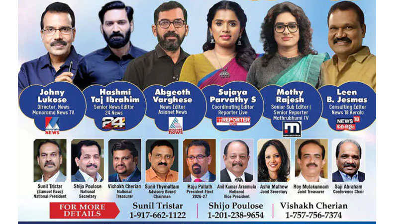 സുനിൽ ട്രൈസ്റ്റാർ (സാമുവൽ ഈശോ) പ്രസിഡന്റ്, ഷിജോ പൗലോസ് (സെക്രട്ടറി), വിശാഖ് ചെറിയാൻ ട്രഷറർ), സുനിൽ തൈമറ്റം (അഡ്വൈസറി ബോർഡ് ചെയർമാൻ), രാജു പള്ളത്ത് (പ്രസിഡന്റ് ഇലക്ട്-2026-27), അനിൽ കുമാർ ആറന്മുള (വൈസ് പ്രസിഡന്റ്), ആഷാ മാത്യു (ജോ. സെക്രട്ടറി), റോയ് മുളകുന്നം (ജോ. ട്രഷറർ) എന്നിവരടങ്ങിയ പുതിയ ഭരണസമിതിയാണ് എഡിസൺ കോൺഫറൻസിന് നേതൃത്വം നൽകുന്നത്.
