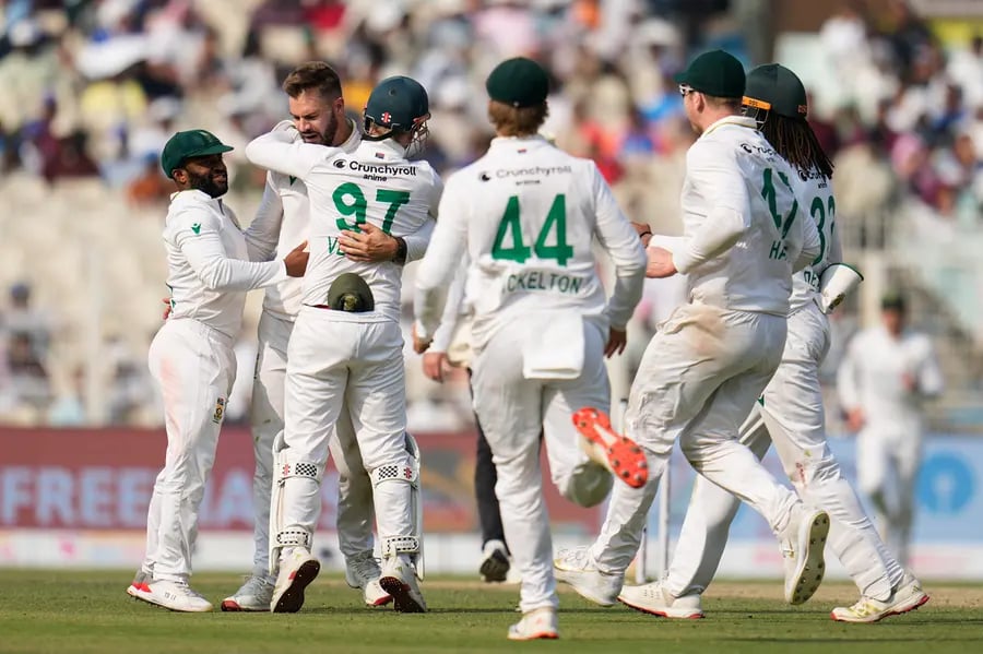 കൊൽക്കത്തയിലെ ഈഡൻ ഗാർഡൻസിൽ ദക്ഷിണാഫ്രിക്കയെ വീഴ്ത്താൻ ഒരുക്കിയ സ്പിൻ പിച്ച് ഇന്ത്യയ്ക്ക് തന്നെ കനത്ത തിരിച്ചടിയായി. പരമ്പരയിലെ ആദ്യ ടെസ്റ്റിൽ 30 റൺസിന്റെ ദയനീയ പരാജയമാണ് ടീം ഇന്ത്യ വഴങ്ങിയത്. 124 റൺസിന്റെ വിജയലക്ഷ്യം പിന്തുടർന്ന ഇന്ത്യ 93 റൺസിന് ഓൾഔട്ടായി. സൈമൺ ഹാർമർ നാല് വിക്കറ്റുകളും മാർക്കോ യാൻസനും കേശവ് മഹാരാജും രണ്ട് വിക്കറ്റ് വീതവും വീഴ്ത്തി ദക്ഷിണാഫ്രിക്കയെ മുന്നിലെത്തിച്ചു. ഇതോടെ പരമ്പരയിൽ പ്രോട്ടീസ് 1-0ന് മുൻതൂക്കം നേടി.