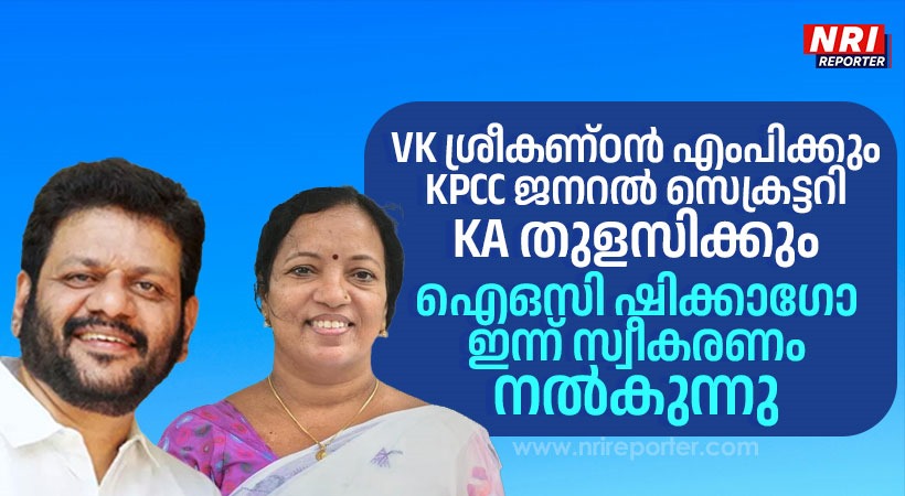 ഷിക്കാഗോ : വികെ ശ്രീകണ്ഠന് എംപിയേയും പത്നി കെപിസിസി ജനറല് സെക്രട്ടറി കെ.എ തുളസിയേയും സ്വീകരിക്കാനൊരുങ്ങി ഇന്ത്യന് ഓവര്സീസ് കോണ്ഗ്രസ് (ഐഒസി) ഷിക്കാഗോ. ഇല്ലിനോയിയിലെ മോര്ട്ടണ് ഗ്രോവിലുള്ള സെന്റ് മേരീസ് ക്നാനായ പള്ളിയില്വെച്ച് (7800 Lyons St.) ഒക്ടോബര് 17 വെള്ളിയാഴ്ച രാത്രി 8 നാണ് സ്വീകരണ പരിപാടി.