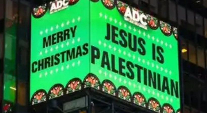 Jesus is Palestinian? This message appeared on a digital billboard in Times Square, New York City, during the Christmas season