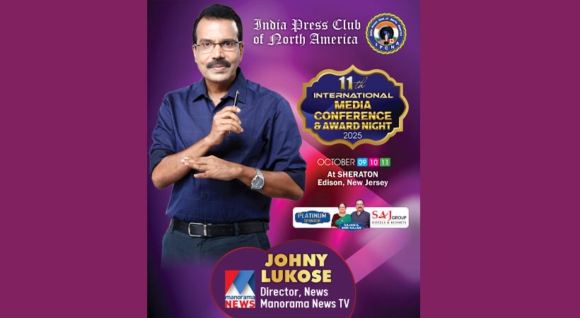 എഡിസൺ, ന്യു ജേഴ്സി: ഇന്ത്യ പ്രസ് ക്ലബ് ഓഫ് നോർത്ത് അമേരിക്കയുടെ പതിനൊന്നാമത് അന്താരാഷ്ട്ര കോൺഫറൻസിനു അടുത്ത വ്യാഴാഴ്ച തുടക്കം കുറിക്കുമ്പോൾ അതിഥികളായെത്തുന്നവരിൽ പ്രസ് ക്ലബിന്റെ തന്നെ മാധ്യമ ശ്രീ അവാർഡ് മുൻപ് നേടിയിട്ടുള്ള ജോണി ലൂക്കോസുമുണ്ട്. 2006 മുതല് മനോരമ ന്യൂസ് ചാനലില് ന്യൂസ് ഡയറക്ടര്. കേരളത്തിലെ മാധ്യമരംഗത്തെ നിയന്ത്രിക്കുന്നവരിൽ ഒരാളെന്ന നിലയിൽ പ്രക്ഷേപണ ചരിത്രത്തോടൊപ്പം നടക്കുന്ന ഒരാൾ എന്ന് പറയാം.