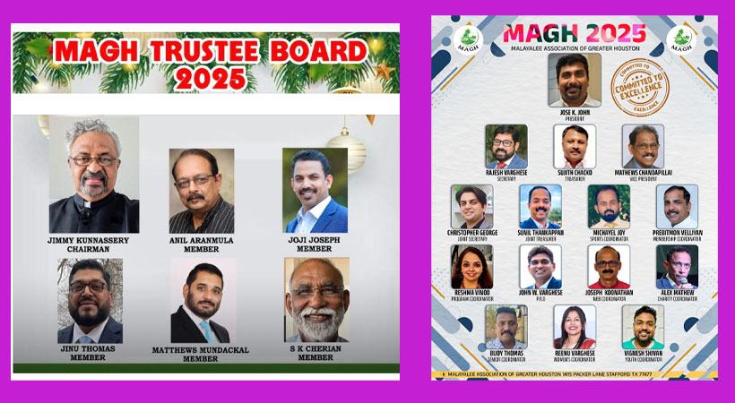 ഡിസംബർ 13ന് നടന്ന തെരഞ്ഞെടുപ്പിൽ റോയ് മാത്യുവിന്റെ നേതൃത്വത്തിലുള്ള ടീം യുണൈറ്റഡ് മികച്ച വിജയമാണ് കരസ്ഥമാക്കിയത്. ഡിസംബർ 27 നടക്കുന്ന സത്യപ്രതിജ്ഞ ചടങ്ങിൽ പ്രസിഡണ്ടായി തിരഞ്ഞെടുക്കപ്പെട്ട റോയി മാത്യുവിനോടൊപ്പം വിനോദ് ചെറിയാൻ, സന്തോഷ് ആറ്റുപുറം, അനില സന്ദീപ്, ഷിനു എബ്രഹാം, സുബിൻ ബാലകൃഷ്ണൻ, ജിൻസ് മാത്യു, സുനിൽ തങ്കപ്പൻ, സാജൻ ജോൺ, ജീവൻ സൈമൺ, അമ്പിളി ആന്റണി, ബെനിജ ചെറു, മിഖായേൽ ജോയ്, ബിജു ശിവൻ, ഡെന്നിസ് മാത്യു എന്നിവരും പുതിയ ഭരണസമിതിയിലേക്ക് സത്യപ്രതിജ്ഞ ചെയ്ത് അധികാരമേൽക്കും. ട്രസ്റ്റീ ബോർഡിലേക്ക് തിരഞ്ഞെടുക്കപ്പെട്ട ക്ലാരമ്മ മാത്യുവും സത്യപ്രതിജ്ഞ ചെയ്ത് പദവി ഏറ്റെടുക്കും. ട്രസ്റ്റീ ബോർഡ് ചെയർമാൻ ജിമ്മി കുന്നശ്ശേരി സത്യപ്രതിജ്ഞ ചടങ്ങുകൾക്ക് നേതൃത്വം നൽകും. ചരിത്രത്തിലെ ഏറ്റവും മികച്ച മാഗ് തെരഞ്ഞെടുപ്പിനാണ് ഹൂസ്റ്റൺ സാക്ഷ്യം വഹിച്ചത്. കുറ്റമറ്റ രീതിയിൽ, സാങ്കേതികമികവോടെ തെരഞ്ഞെടുപ്പ് സംഘടിപ്പിക്കാൻ കഴിഞ്ഞു എന്നുള്ളത് നിലവിലുള്ള ബോർഡിനെ സംബന്ധിച്ച് വലിയ നേട്ടമായി. ഇലക്ഷൻ കമ്മീഷന്റെ മികവുറ്റ പ്രവർത്തനവും ശ്ലാഘനീയമാണ്.