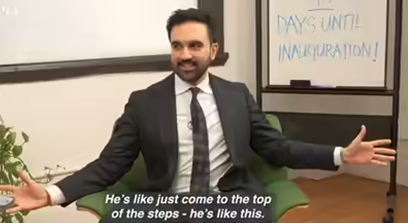 സത്യം പറയട്ടെ, മംദാനിയുടെ വിജയാഘോഷത്തിലെ സ്പീക്കറുകളിൽ നിന്ന് ‘ധൂം മച്ചാലെ’ എന്ന ഗാനം കേട്ടതുമുതൽ നാമെല്ലാവരും ആശ്ചര്യപ്പെടുന്നു, തിരഞ്ഞെടുക്കപ്പെട്ട മേയർ ഒരു ബോളിവുഡ് സംഗീത പ്രേമിയാണോ എന്ന്, അതിനാൽ ഞങ്ങൾ അദ്ദേഹത്തോട് ഇതുമായി ബന്ധപ്പെട്ട ചോദ്യങ്ങളും ചോദിക്കുമെന്ന് അവതാരകൻ പറയുന്നുണ്ട്. ഷാരൂഖ് ഖാൻ്റെ ഛയ്യ..ഛയ്യ പോലുള്ള ഗാനങ്ങളെക്കുറിച്ച് സംസാരിച്ച മംദാനി തുടർന്നാണ് ഷാരൂഖിൻ്റെ ഐക്കോണിക് പോസും അനുകരിച്ചത്. ഈ വർഷം ജൂണിൽ തൻ്റെ തിരഞ്ഞെടുപ്പ് പ്രചാരണത്തനിടെയും മംദാനി ഷാരൂഖിൻ്റെ പ്രശസ്തമായ ഈ പോസ് അനുകരിക്കുകയും സമൂഹമാധ്യമങ്ങളിലടക്കം ശ്രദ്ധ നേടുകയും ചെയ്തിരുന്നു.