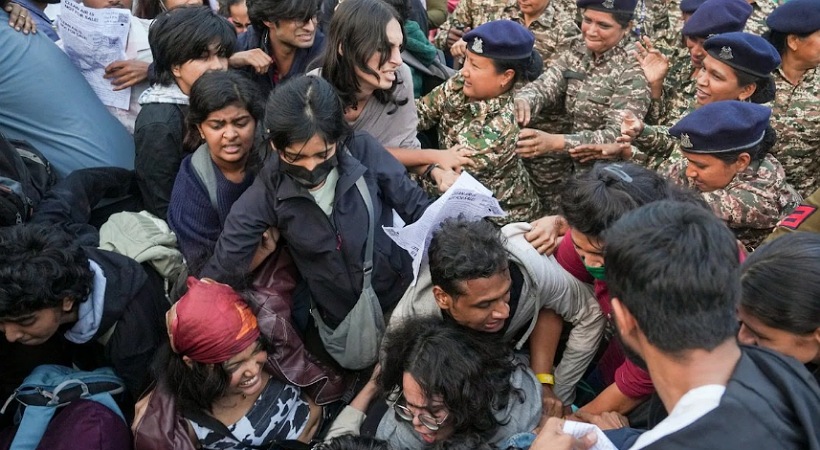 പ്രതിഷേധം നിർത്താൻ പൊലീസ് ഇടപെട്ടപ്പോൾ പ്രതിഷേധക്കാർ അക്രമാസക്തരായി. ബാരിക്കേഡുകൾ തകർത്ത് പൊലീസിനു നേരെ മുളകു സ്പ്രേ തളിച്ചു. ഇതിൽ നാലോളം പൊലീസുകാർക്ക് പരുക്കേറ്റു; അവരെ റാം മനോഹർ ലോഹ്യ ആശുപത്രിയിൽ പ്രവേശിപ്പിച്ചു. മാവോയിസ്റ്റ് മുദ്രാവാക്യങ്ങൾ മുഴക്കിയവർക്കെതിരെ നിയമനടപടികൾ സ്വീകരിച്ചതായി പൊലീസ് അറിയിച്ചു. പരിസ്ഥിതി പ്രതിഷേധത്തിനിടെ ഇത്തരം മുദ്രാവാക്യങ്ങൾ ഉയർന്നത് വിവാദമായിരിക്കുന്നു.