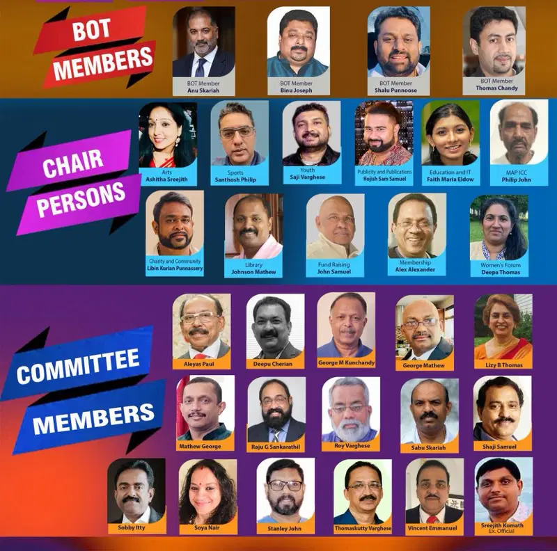 പ്രസിഡൻറ് ബെൻസൻ പണിക്കരും സെക്രട്ടറി ലിജോ ജോർജ്, ട്രഷർ ജോസഫ് കുരുവിള, എന്നിവരുടെ നേതൃത്വത്തിൽ എല്ലാ ഭാരവാഹികളും ഈ ക്രിസ്മസ്-പുതുവത്സര ഫാമിലി ബാങ്ക്വറ്റ് ലേക്ക് മാപ്പ് ഫാമിലി സുഹൃത്തുക്കളായ ഏവരെയും ഹാർദ്ദവമായി സ്വാഗതം ചെയ്തു.