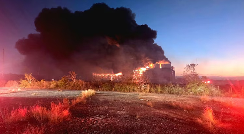Massive fire breaks out at decommissioned Texas power plant.