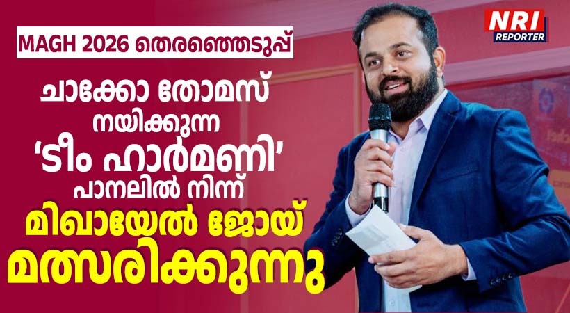 ഹൂസ്റ്റൺ: ഗ്രേറ്റർ ഹൂസ്റ്റൺ മലയാളി അസോസിയേഷൻ (MAGH) തെരഞ്ഞെടുപ്പ് കാലത്തേക്ക് കടന്നിരിക്കുമ്പോൾ കമ്മ്യൂണിറ്റി ലീഡറായ മിഖായേൽ ജോയ് (മിക്കി) 2026ലെ MAGH തിരഞ്ഞെടുപ്പിൽ ടീം ഹാർമണി പാനലിന്റെ സ്ഥാനാർത്ഥിയായി മത്സരിക്കുന്നു. ചാക്കോ തോമസ് ആണ് ടീം ഹാർമണി പാനൽ നയിക്കുന്നത്.