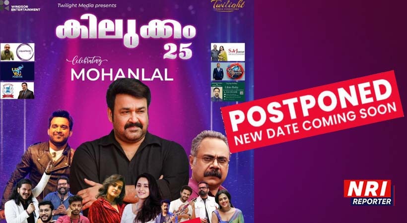 ന്യുജെഴ്സി: ചില പ്രത്യേക കാരണങ്ങളാൽ മാറ്റിവച്ച മോഹൻലാൽ ഷോ കിലുക്കം 2026 മാർച്ചിൽ നടക്കുമെന്ന് സംഘാടകരായ ഷിജോ പൗലോസ്, ബൈജു വർഗീസ് എന്നിവർ അറിയിച്ചു. നിലവിൽ ടിക്കറ്റ് വാങ്ങിയവർക്ക് ആവശ്യമെങ്കിൽ ഏത് സമയത്തും ടിക്കറ്റ് തുക തിരിച്ചുനൽകാൻ തയ്യാറാണെന്നും സംഘാടകർ അറിയിച്ചു. അല്ലാത്തപക്ഷം നിലവിലുള്ള ടിക്കറ്റുകൾ തന്നെ ഷോ നടക്കുമ്പോൾ ഉപയോഗിക്കാം. കിലുക്കം ഷോ സംബന്ധിച്ച കൂടുതൽ വിവരങ്ങൾക്ക് ഷിജോ പൗലോസ് – 201 238 9654 , ബൈജു വർഗീസ് – 914 349 1559 എന്നീ നമ്പറുകളിൽ ബന്ധപ്പെടാവുന്നതാണ്.