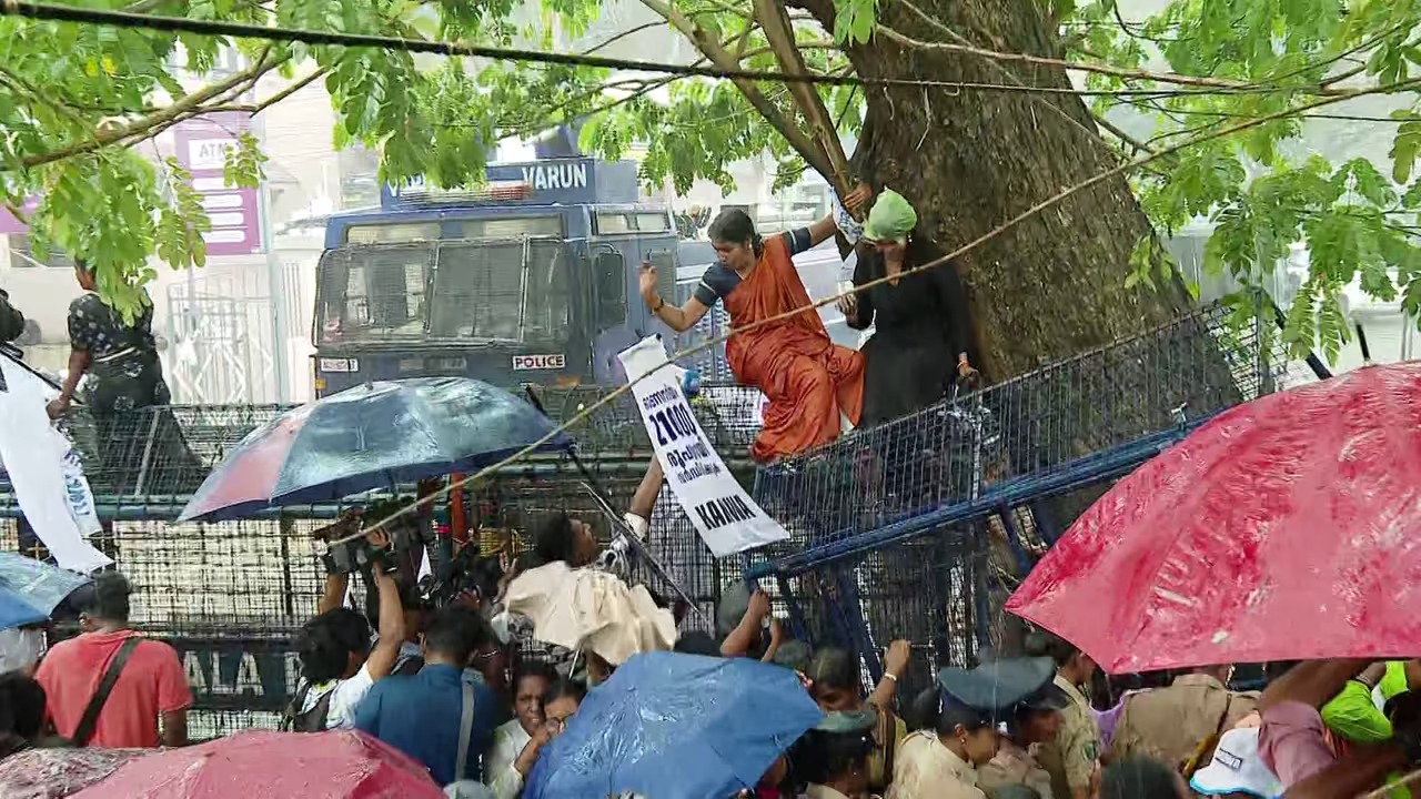 തിരുവനന്തപുരം: വേതന വർധന ആവശ്യപ്പെട്ട് എട്ട് മാസമായി ആശാപ്രവർത്തകർ നടത്തിവരുന്ന സമരത്തിന്റെ ഭാഗമായി ക്ലിഫ് ഹൗസിലേക്ക് നടത്തിയ പ്രതിഷേധ മാർച്ചിൽ സംഘർഷം. ബാരിക്കേഡിന് മുകളിൽ കയറി പ്രതിഷേധിച്ച പ്രവർത്തകർക്ക് നേരെ പൊലീസ് ജലപീരങ്കി ഉപയോഗിച്ചു. മാർച്ചിൽ പാട്ടുകൊട്ടി പ്രതിഷേധിച്ച ആശാപ്രവർത്തകർ രാവിലെ 12 മണി മുതൽ ക്ലിഫ് ഹൗസിന് മുന്നിൽ സമരം നടത്തുകയാണ്.
