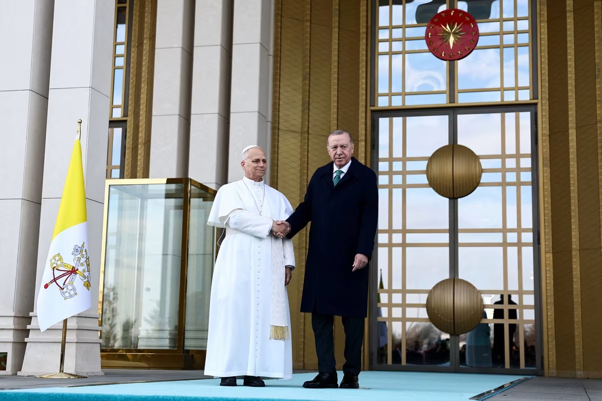 തുർക്കിയിലേക്കും ലെബനനിലേക്കുമുള്ള തന്റെ സന്ദർശനം ഐക്യത്തിലും സമാധാനത്തിലും ശ്രദ്ധ കേന്ദ്രീകരിക്കുന്നതാണെന്നും, വ്യത്യാസങ്ങൾ, വ്യത്യസ്ത മതങ്ങൾ, വ്യത്യസ്ത വിശ്വാസങ്ങൾ എന്നിവ ഉണ്ടായിരുന്നിട്ടും എല്ലാ പുരുഷന്മാരും സ്ത്രീകളും തീർച്ചയായും സഹോദരങ്ങളും സഹോദരിമാരുമാകാനുള്ള വഴികൾ കണ്ടെത്താനാണ്” ശ്രമിക്കുന്നതെന്നും പോപ്പ് ലിയോ പറഞ്ഞു. തുർക്കി തലസ്ഥാനത്ത് വിമാനം ഇറങ്ങിയ ശേഷം പ്രാദേശിക സമയം വ്യാഴാഴ്ച ഉച്ചയ്ക്ക് ശേഷം പ്രസിഡൻഷ്യൽ കൊട്ടാരത്തിൽ വെച്ച് പോപ്പ് ലിയോ എർദോഗനുമായി കൂടിക്കാഴ്ച നടത്തി. ഒരു കറുത്ത കാറിൽ നിന്ന് പുറത്തുവന്ന് നീല പരവതാനിയിലേക്ക് കാലെടുത്തുവെച്ച പോപ്പ് കൊട്ടാര കവാടത്തിൽ വെച്ച് എർദോഗനുമായി ഹസ്തദാനം ചെയ്യുന്ന ദൃശ്യങ്ങൾ റോയിട്ടേഴ്സ് പുറത്തുവിട്ടു.