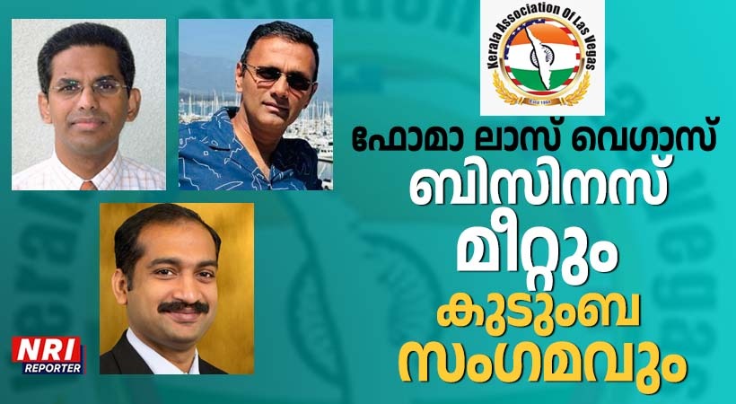 ലാസ് വേഗസ്: ഫോമാ വെസ്റ്റേൺ റീജിയന്റെ ആഭിമുഖ്യത്തിൽ ലാസ് വേഗസിൽ ഈ വീക്കെൻഡിൽ അരങ്ങേറുന്ന ബിസിനസ് മീറ്റിനും കുടുംബ സംഗമത്തിനും എല്ലാവിധ ആശംസകളും നേരുന്നതായും ഏവരെയും ഹൃദ്യമായി സ്വാഗതം ചെയ്യുന്നതായും കേരള അസോസിയേഷൻ ഓഫ് ലാസ് വേഗാസിന്റെ പ്രസിഡന്റ് തോംസൺ ചെമ്പ്ലാവിൽ അറിയിച്ചു. ലാസ് വെഗാസിലെ ഈ പരിപാടിയ്ക്ക് ആതിഥേയത്വം അരുളുന്നത് വേഗാസിലെ ഈ അസോസിയേഷനാണ്.