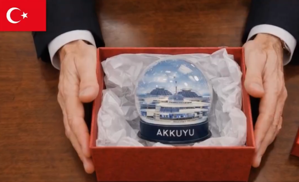 തുർക്കി പ്രസിഡന്റ് റെജപ് തയ്യിപ് എർദോഗാന് പുടിൻ നൽകുന്ന സമ്മാനം ‘അക്കുയു’ എന്നെഴുതിയ സ്നോ ഗ്ലോബാണ്. റഷ്യയുടെ റോസാറ്റം നിർമിക്കുന്ന തുർക്കിയിലെ ആദ്യ ആണവ വൈദ്യുത നിലയത്തെയാണ് ഇത് സൂചിപ്പിക്കുന്നത്. 2026ൽ പ്രവർത്തനം ആരംഭിക്കുമെന്ന പ്രതീക്ഷയുള്ള അക്കുയു പദ്ധതിക്ക് റഷ്യ അടുത്തിടെ അധിക ധനസഹായം നൽകിയിരുന്നു.