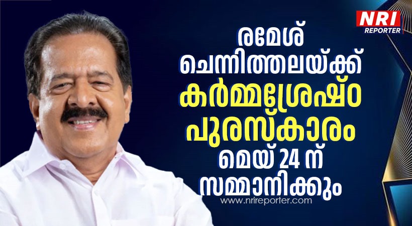 Ramesh Chennithala receives Global Indian Karma Shrestha Award on May 24th