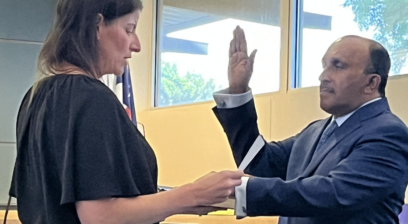 മെയ് 12 തിങ്കളാഴ്ച വൈകീട്ട് 7 മണിക്ക് സണ്ണിവെയ്ല് സിറ്റി ഹാളില് നടന്ന ചടങ്ങില് ടെക്സസ് സംസ്ഥാന പ്രതിനിധി റഹിറ്റ ബോവേഴ്സാണ് സത്യപ്രതിജ്ഞ വാചകം ചൊല്ലി കൊടുത്തത്.പാസ്റ്റർ ഷാജി കെ ഡാനിയേലിന്റെ പ്രാർത്ഥനയോടെയാണ് സത്യപ്രതിജ്ഞ ചടങ്ങു് ആരംഭിച്ചത്എം ഡാളസ് സെന്റ് പോൾസ് ഇടവക വികാരി റെജിൻ ജോൺ ഉൾപെട നിരവധി പേര് ചടങ്ങിൽ പങ്കെടുത്തു.